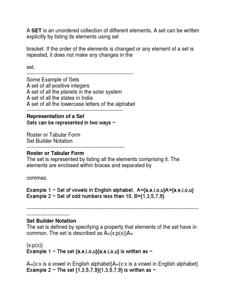 A Set Is An Unordered Collection Of Different Elements Pdf Set Mathematics Empty Set from imgv2-1-f.scribdassets.com B) the set of all vowels in the english alphabet. · i already mentioned that x belongs to vowel. In the last case a typical element of a is described. (vi) first four vowels of english alphabets. Write in tabular and set builder form. A = {x|x is a letter of the english alphabet}. Thus, in the set v of vowels in the english alphabet, a ∈ v but b ∉ v. (d) all the consonants of the english alphabet.
